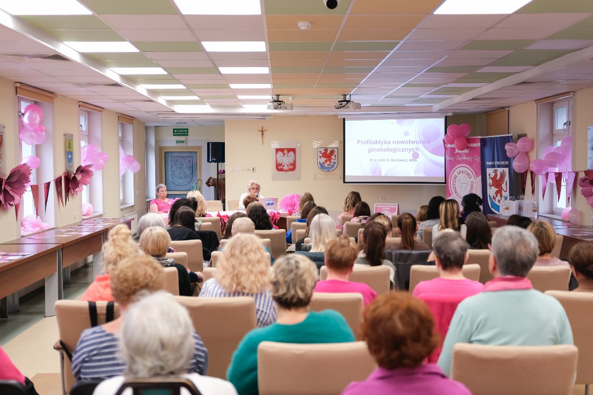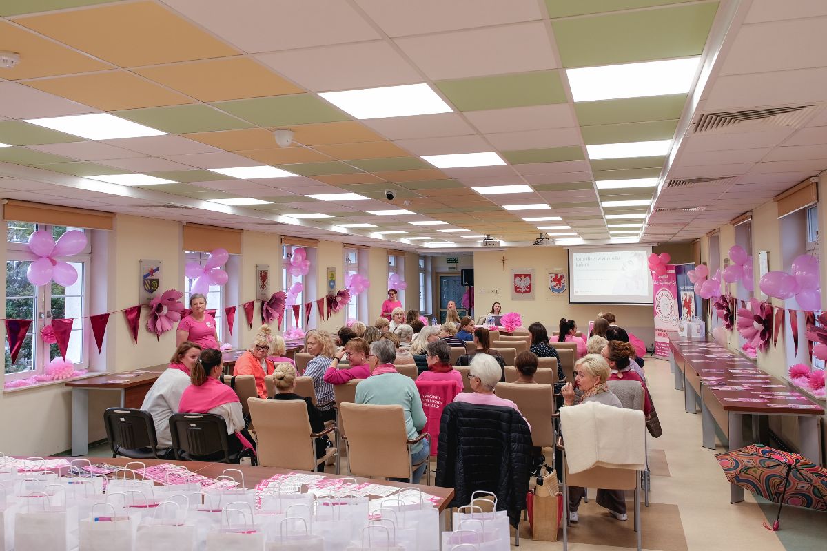 Akcja rozpoczęła się 8 października konferencją w siedzibie Starostwa Powiatowego. Wykłady rozpoczęto wystąpieniem Pani Patrycji Biernackiej. która mówiła o roli zdrowego odżywiania w profilaktyce nowotworów. Pani dr Katarzyna Oronowicz, ginekolog-onkolog, przypomniała, jak ważne są regularne badania, zaś dr Józef Jankowski pokazał, jak prawidłowo wykonać samobadanie piersi – prosty gest, który może uratować życie. Konferencja przyciągnęła kobiety w różnym wieku, od młodych kobiet, uczennic szkół ponadpodstawowych, po dojrzałe kobiety z różnym bagażem doświadczeń.