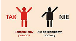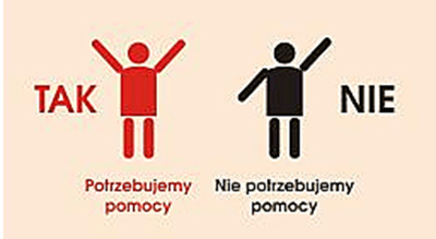 Tak, potrzebuję pomocy – sylwetka na kształt litery Y (Yes) z obiema rękami uniesionymi do góry.