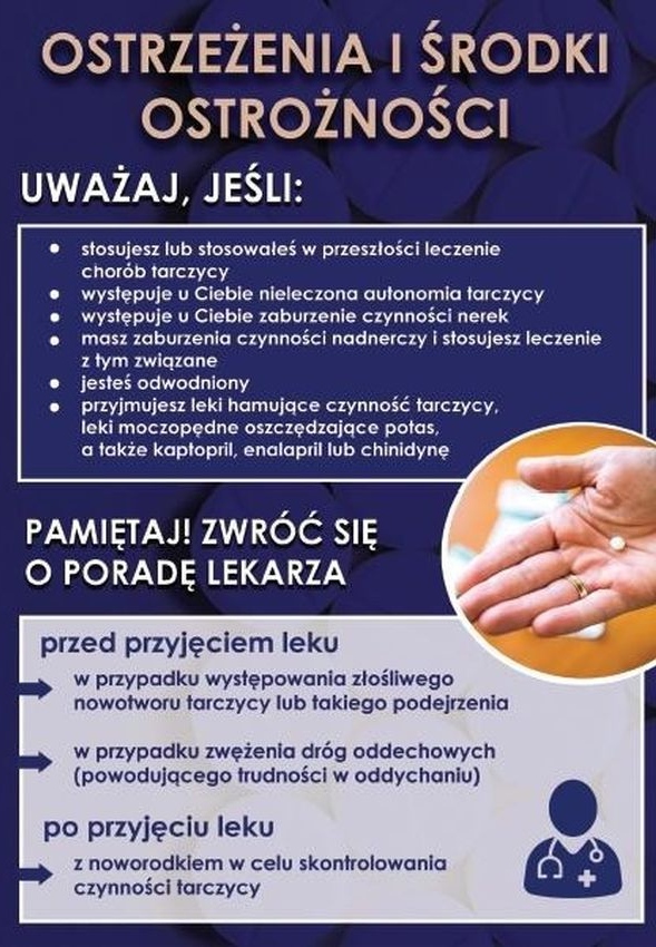- kobiety w ciąży i karmiące piersią – 2 tabletki (100 mg jodu).